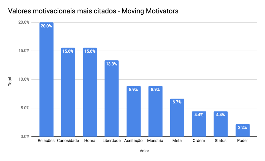 O valores motivacionais mais citados (73,4%) pelo time foram: